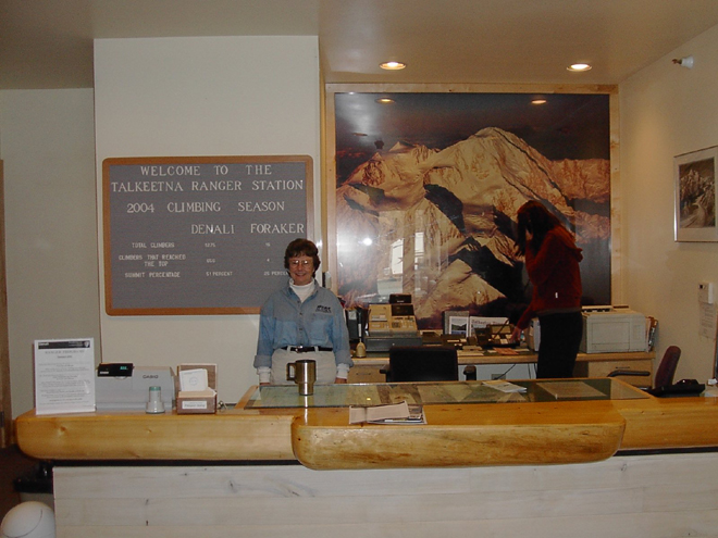 タルキートナ・レンジャーステーションは、まさにマッキンリー登山の登竜門で、全ての登山者がここの門をたたきます。レンジャーのおばさんはとても親切な方でした。植村さんのことを聞いても