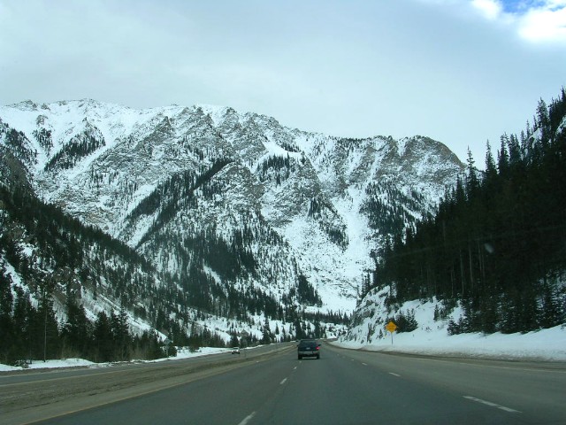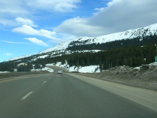 ロッキーの山々に岩と雪の交差する色が目に映えました。まだ、完全な雪の世界ではないですけど美しいもんです。 |