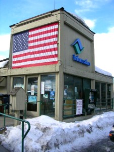 Cityまでの道中、ロッキー山脈でも見かけなかったくらいの物凄い大雪。除雪作業も全く追いついていない状態で、完璧な雪道でした。 |