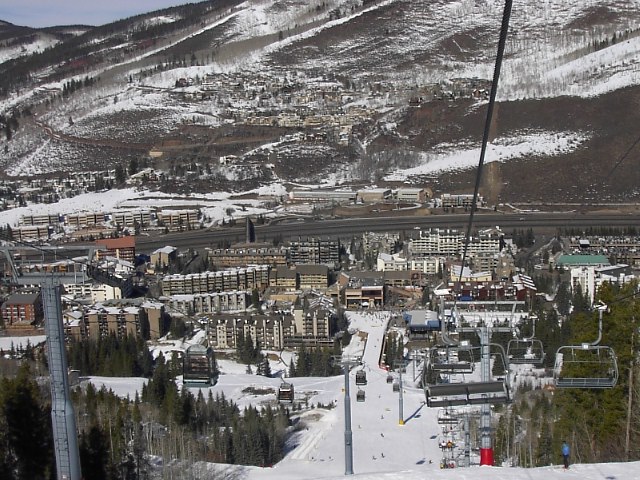 まず、麓にはSki villageが2つあり、そのそれぞれが数個のリフトをもってます。こっちはLionsheadというVailの西側のVillage。 |