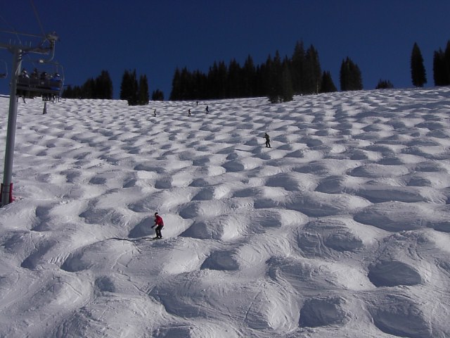 予定した場所へは、看板に従って移動していきます。ちなみに緑=素人(凡人はコレ)、青=中級、黒=玄人のためのコースです。これはアメリカであればどこもそういう認識で間違いないと思います。 |