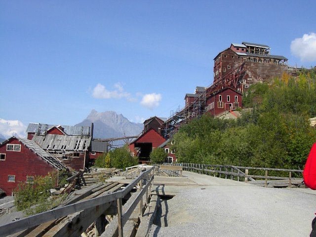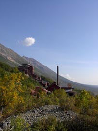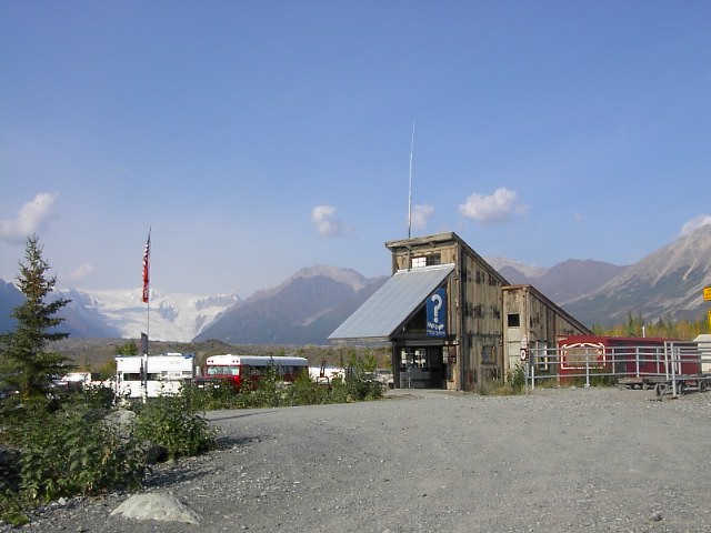 川を渡ってバスにのりました。装甲車のような、たくましい奴です。砂利道は非常に狭く、道中ゆれるゆれる。ほどなくMcCathyの村、本体に入りました。凄い、数件の宿泊施設、お土産やさんです。ここは既に銅鉱は掘りつくし今では経済、産業等の確たるものはなくは観光によるしかないのです。この場所は銅鉱で最盛期をむかえ発展し、それが途切れた時に他と同じようにゴーストタウン化の道を歩んだはずです。そこを守ったのがこの場所の国立公園化、それに続く山登り、Backpackerの氷河ガイド、遊覧飛行機を中心とした観光産業なのだと思います。でなければ人って便利な世界に流れていってしまいますから... |