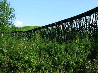 途中、かなりの高度の橋があったりもします。景色はいいのですが、橋はどれもとても幅が狭く車一台がやっと通れるだけの幅しかありません。対向車とはすれ違えないのです。ま、もっともこんな辺鄙な場所に自分のように車で来る物好きなんか殆ど皆無ですから、対向車が来る方が奇跡的なのですが... |
