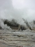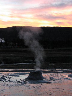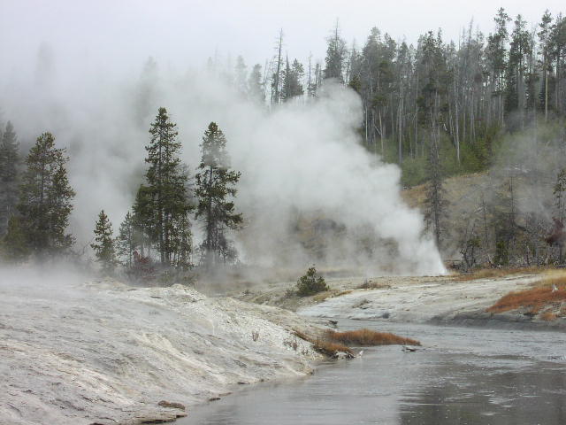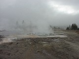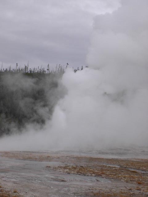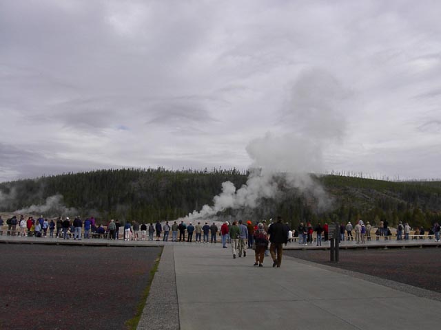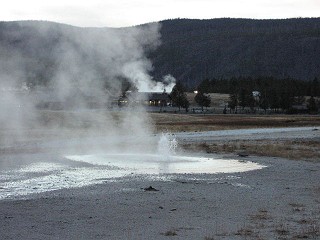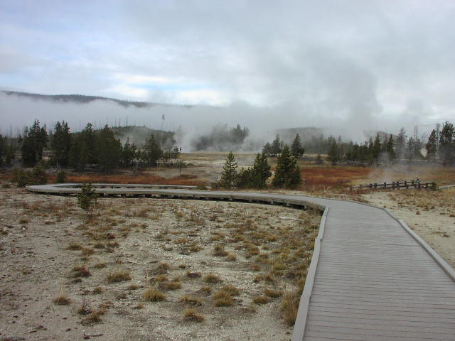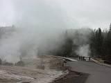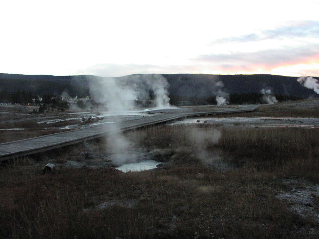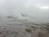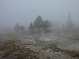 先に朝靄で隠れたOld Faithful間欠泉に戻ってくると |