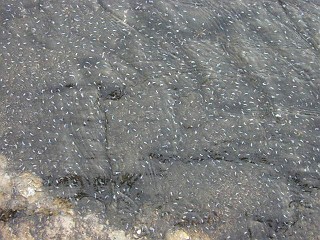 いい湯加減を求めるのはアヒルだけではありません。虫たちも温泉を楽しんでいました。アヒルに虫、こいつら、石灰成分の多いこの場所で独自の進化を遂げるに違いありません。 |