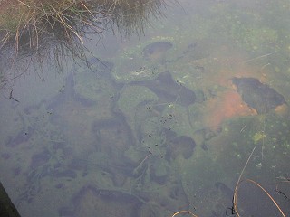 アヒルの足にもやさしいようです。いい湯加減の場所には沢山のアヒルがいました。 |