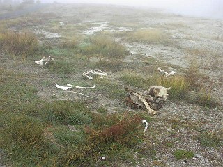 が、Yellow Stoneのこの自然は時に厳しい一面も併せ持っていることをまざまざと見せつけられました。大きなバイソンでも命は限りあるのです。それにしても、あまりにもNaturalな死に様です。動物の骨の転がる世界なんて、TVのはじめ人間ギャートルズの世界だけなんじゃないか?と、文明世界に生きてきた凡人は勘違いしていました。これもまた自然の姿なんですね。 |