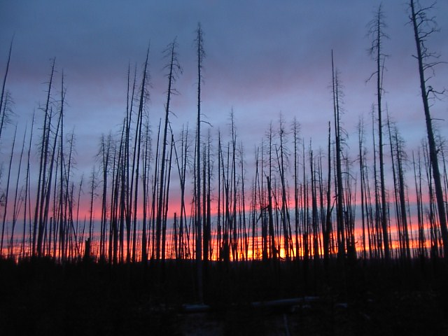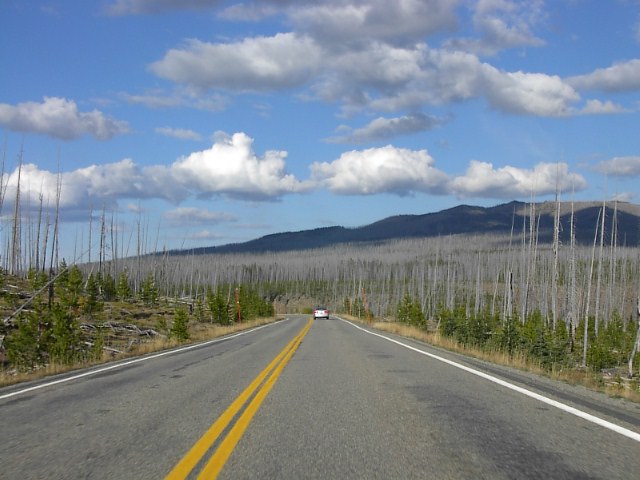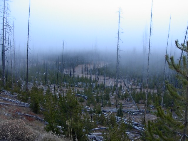 Yellow Stone National Parkでは以前、大規模な火災がありました。多くの公園内の木々が一掃されたのです。燃えたのは松の木々。 |