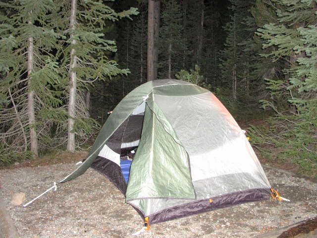 季節は秋ですが高度2500mのこの場所、寒かった... 軽く氷点下でした。あまりに寒いの流石にキャンプサイトにはキャンピングカー以外には殆ど人はいませんでした。これまでのデナリ等での経験から今持つ装備は0℃でも全く問題のない寝袋、装備であることは分かっていましたが、氷点下5度と予想される明日の朝に耐えれるか少々心配はしました。寒くて目が覚めりゃ車に逃げ込もう、などという背徳的逃げの心も手伝って、テントはってスゴスゴと寝袋に入りました。
