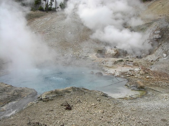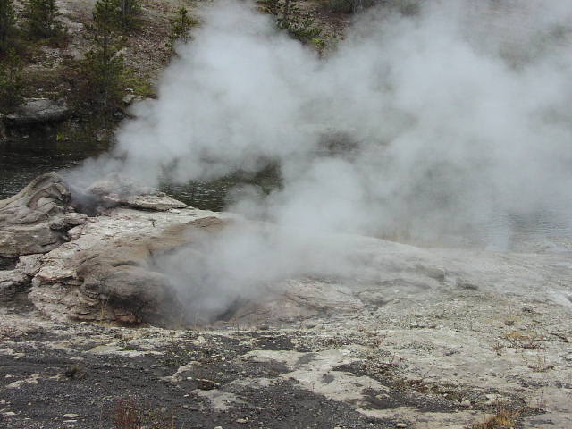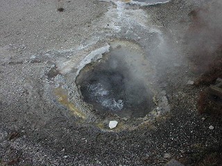 Faithful間欠泉以外にはひとつも名前なんかチェックしませんでしたので、すべて名前不明なのです。それではあまりにショウもない紹介になりそうだったので、擬声語擬態語で表現してみました。笑 |