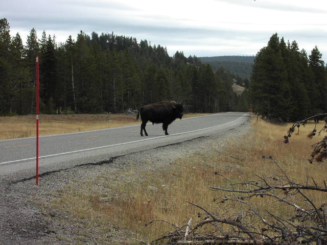 ちなみにYellow stoneには沢山のバイソンがいて、ドライブしていると目の前をしばしば横切ります。 |