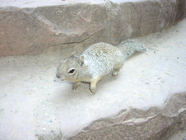 このトレイル中、2種類のリスがいました。ここのリスは餌を人からもらっているのでしょう、とても慣れていて触ることすら出来そうなくらいです。 |