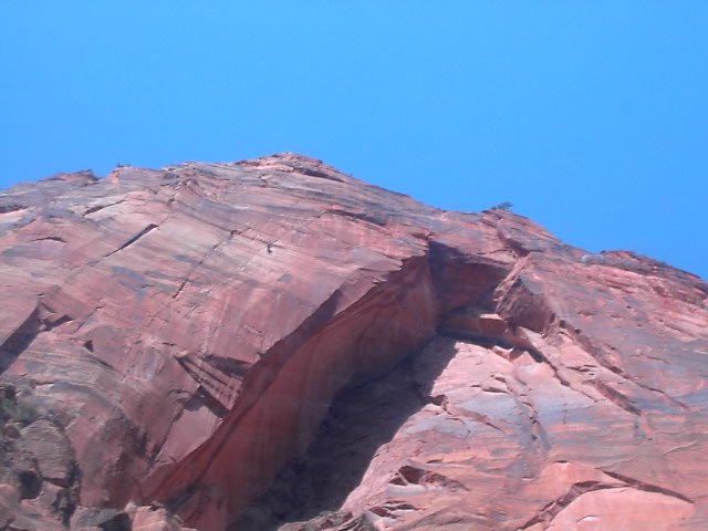 ちなみにそれ以上の楽しみをしている人たちもいました。この巨石中央にいる蟻のような黒っぽい点がみえますか?ロッククライマーです。こりゃ凄いことする人がいたもんです。。。 |