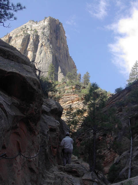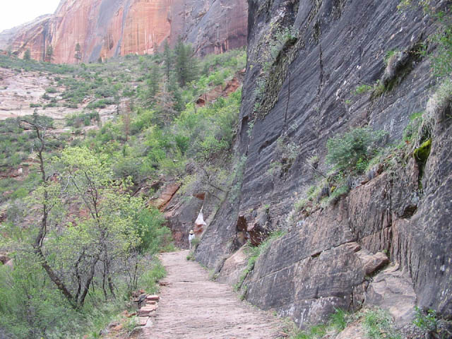 ナローズといわれる場所に向かいます。途中のトレイルは見あげるばかりの巨石です。スケールがとにかくデッカイ。 |